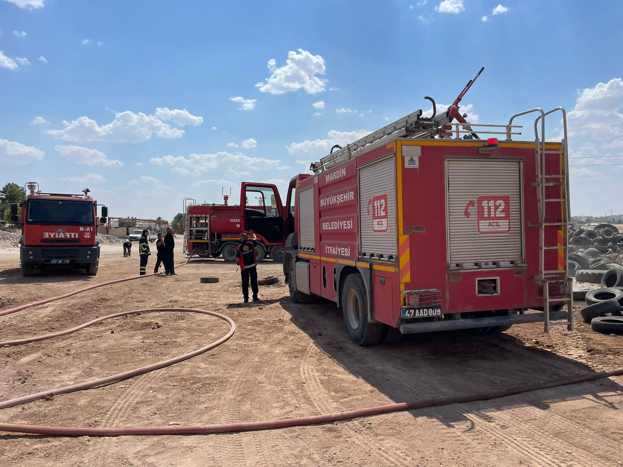 Mardin Büyükşehir Belediyesi itfaiye ekipleri, Nusaybin Belediyesine ait geri dönüşüm alanında çıkan yangını söndürdü.