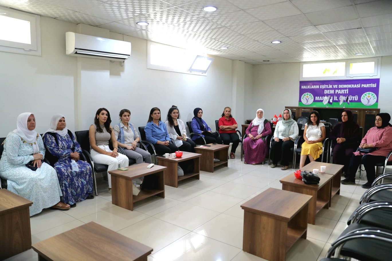 Stratejik Plan Yönetim Grubu son olarak, kadın çalışmalarını esas alan demokratik, katılımcı ve kadın odaklı bir stratejik plan oluşturmak adına Halkların Eşitlik ve Demokrasi Partisi Mardin İl Kadın Meclisi, Barış Anneleri ve Tevgera Jinên Azad aktivistlerini ziyaret ederek DEM Parti İl Başkanlığında bir araya geldi.
